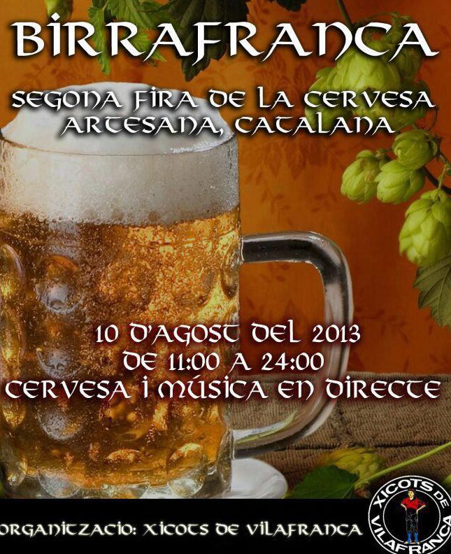 Estamos en pleno verano y eso se nota porque la gente está más pendiente de tomarse su buena cervecita fresquita que de escribir en los blogs, por ejemplo… Son cosas de las vacaciones pero aún así, el movimiento cervecero y en este agosto que hace unos días hemos estrenado, nos encontramos ya con algunos festivales y ferias que merece la pena mencionar. Empezamos por el ‘Birrafranca’, la Feria de la Cerveza Artesanal de Vilafranca del Penedés que en su segunda edición cambia su denominación y nos obsequia con un certamen con un montón de actividades. Está ahí mismo, el próximo sábado día 10.