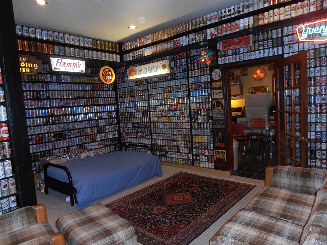 El señor de la foto se llama Jeff Lebo, supera el medio siglo de edad y está considerado el mayor coleccionista de latas de cerveza, ni más ni menos que 83000 piezas que expone en su casa hotel de York Haven, Pensilvania, en los USA. Decimos casa hotel porque realmente es eso, un hotel cuyas habitaciones (5) están literalmente forradas por las latas de su colección y eso le ha valido salir en muchas revistas y reportajes desde ya hace años.